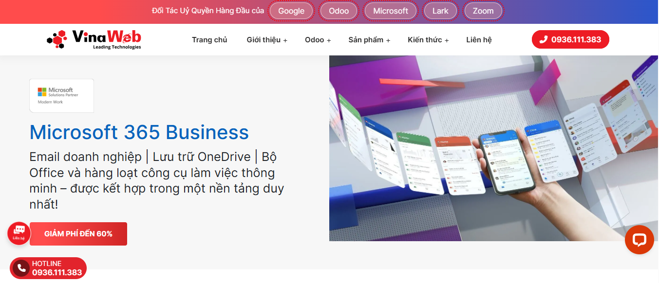 Vinaweb cung cấp dịch vụ tư vấn và triển khai Microsoft 365 cho doanh nghiệp, hỗ trợ từ thiết lập tài khoản, cấu hình Teams đến hướng dẫn sử dụng chi tiết. Đồng thời, doanh nghiệp cũng có thể được tư vấn về giá mua office 365 để lựa chọn giải pháp phù hợp với ngân sách và quy mô hoạt động.