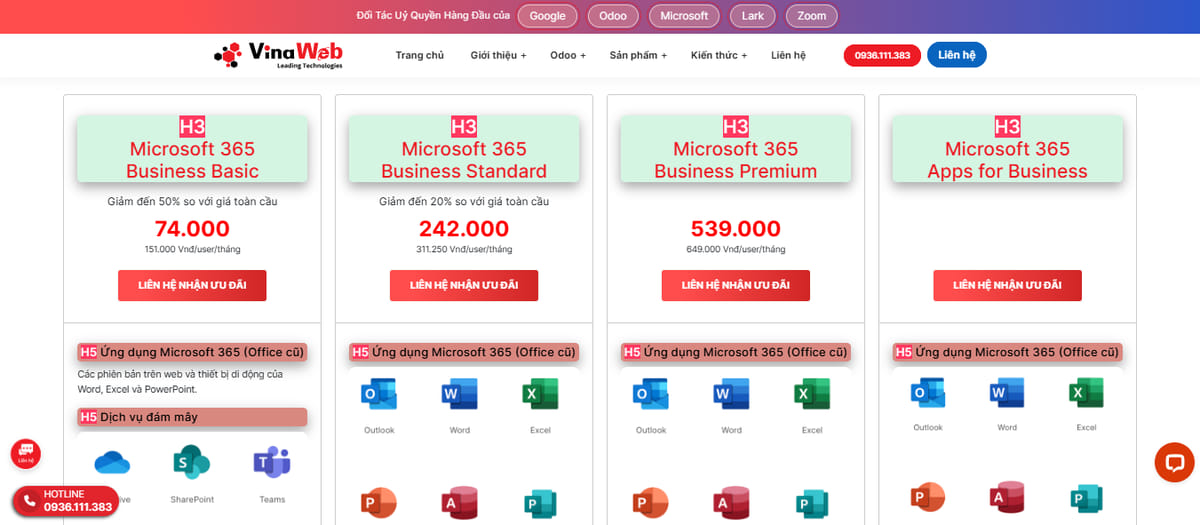 | Giá | 74.000đ/user/tháng | 242.000đ/user/tháng | 539.000đ/user/tháng | Liên hệ tư vấn |