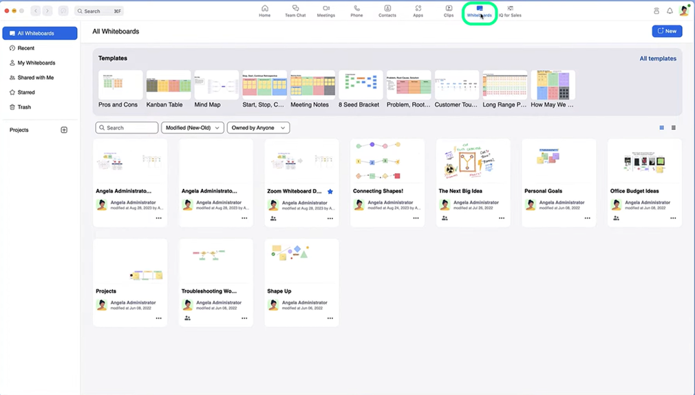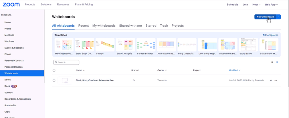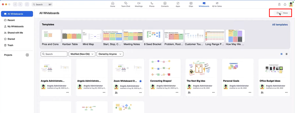 Chọn Create New Whiteboard hoặc mở một whiteboard có sẵn