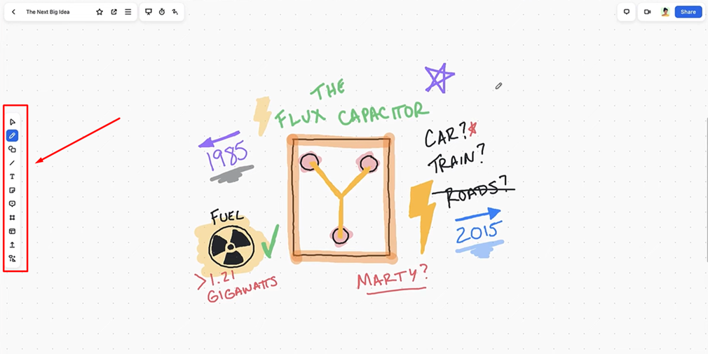 Zoom Whiteboard cung cấp nhiều công cụ trực quan, bao gồm: