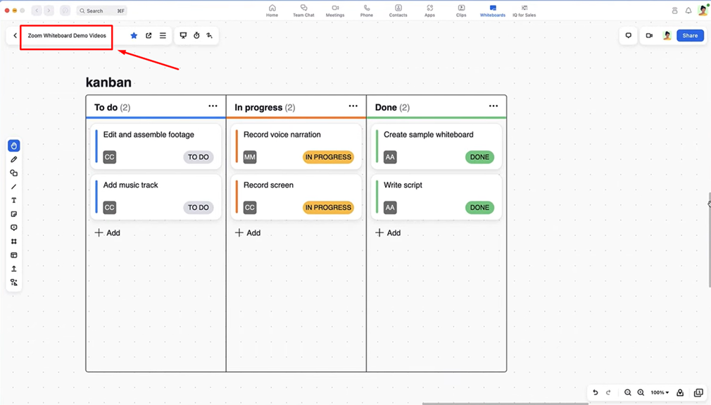 Nhấp vào tên whiteboard ở góc trên