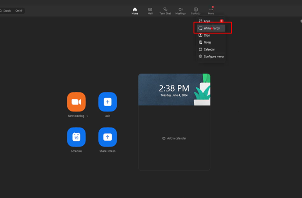 Chọn tab Whiteboards