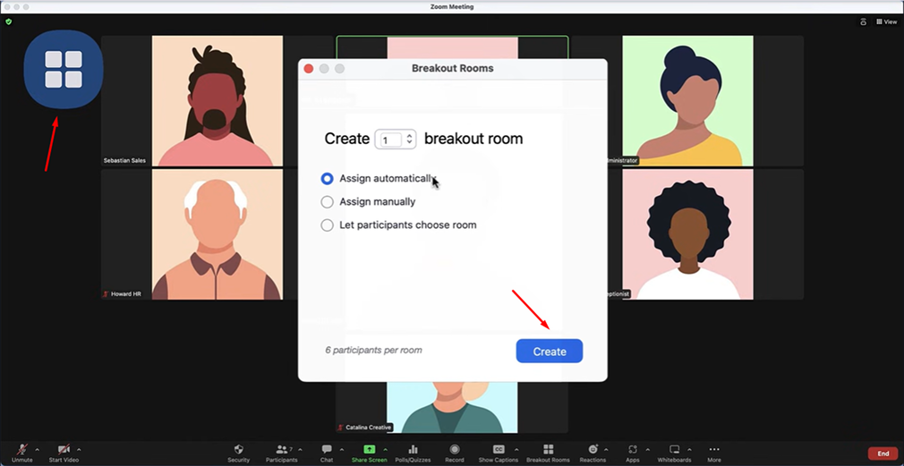 Cho phép chia người tham gia thành nhiều phòng nhỏ để: